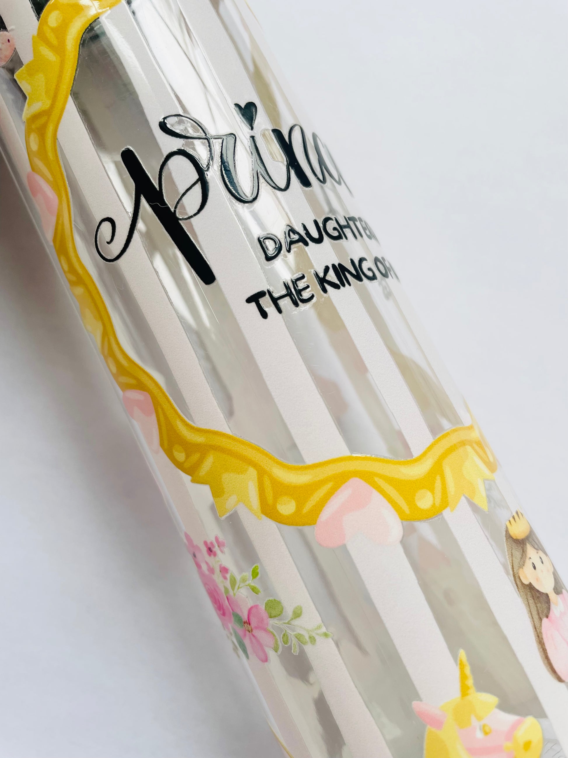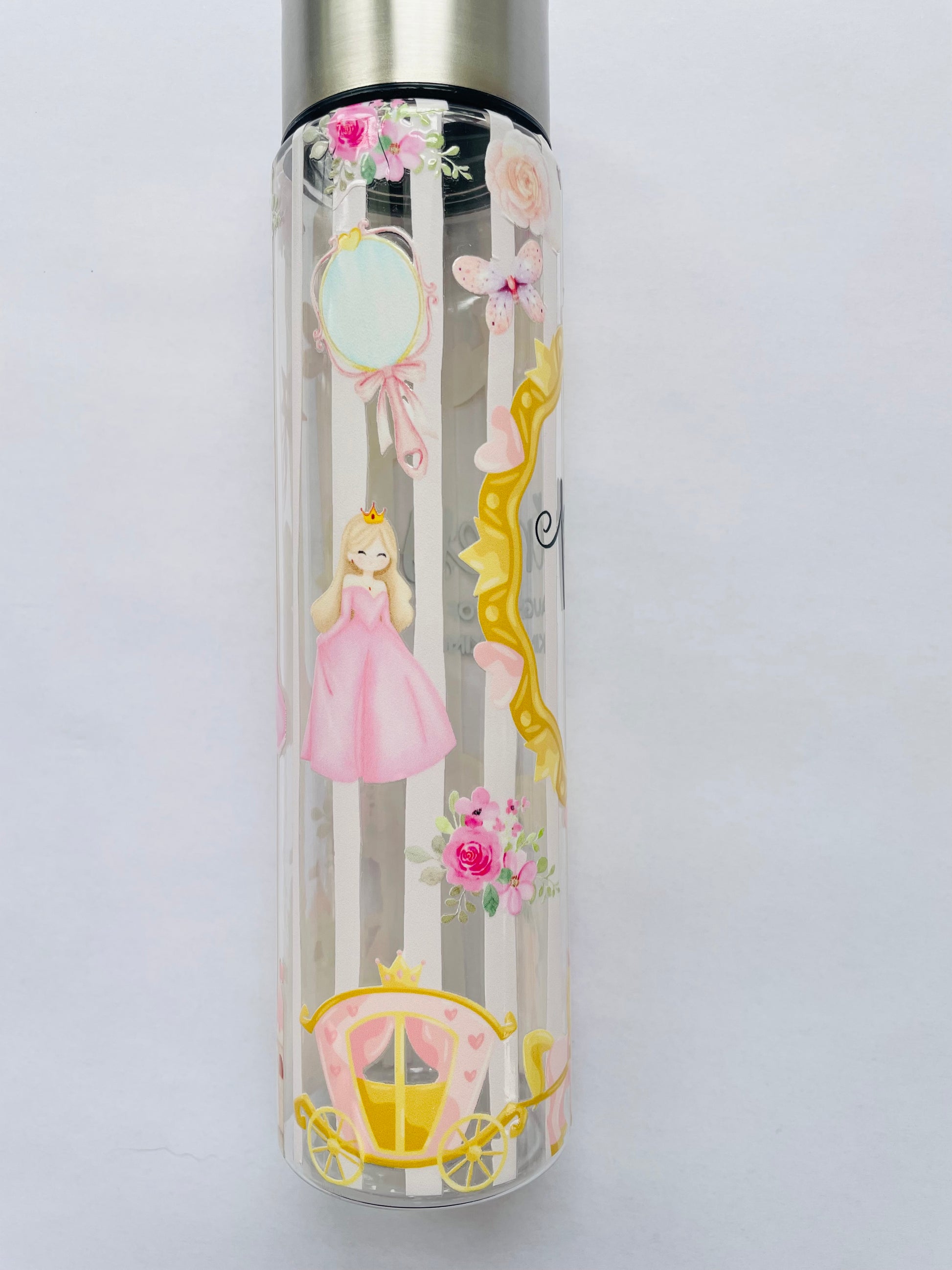 Made from BPA-free plastic, each bottle has an 18 oz capacity, includes a stainless steel screw cap to avoid spills, and is equipped with a handy strap. 3D, Embossed Effect design.