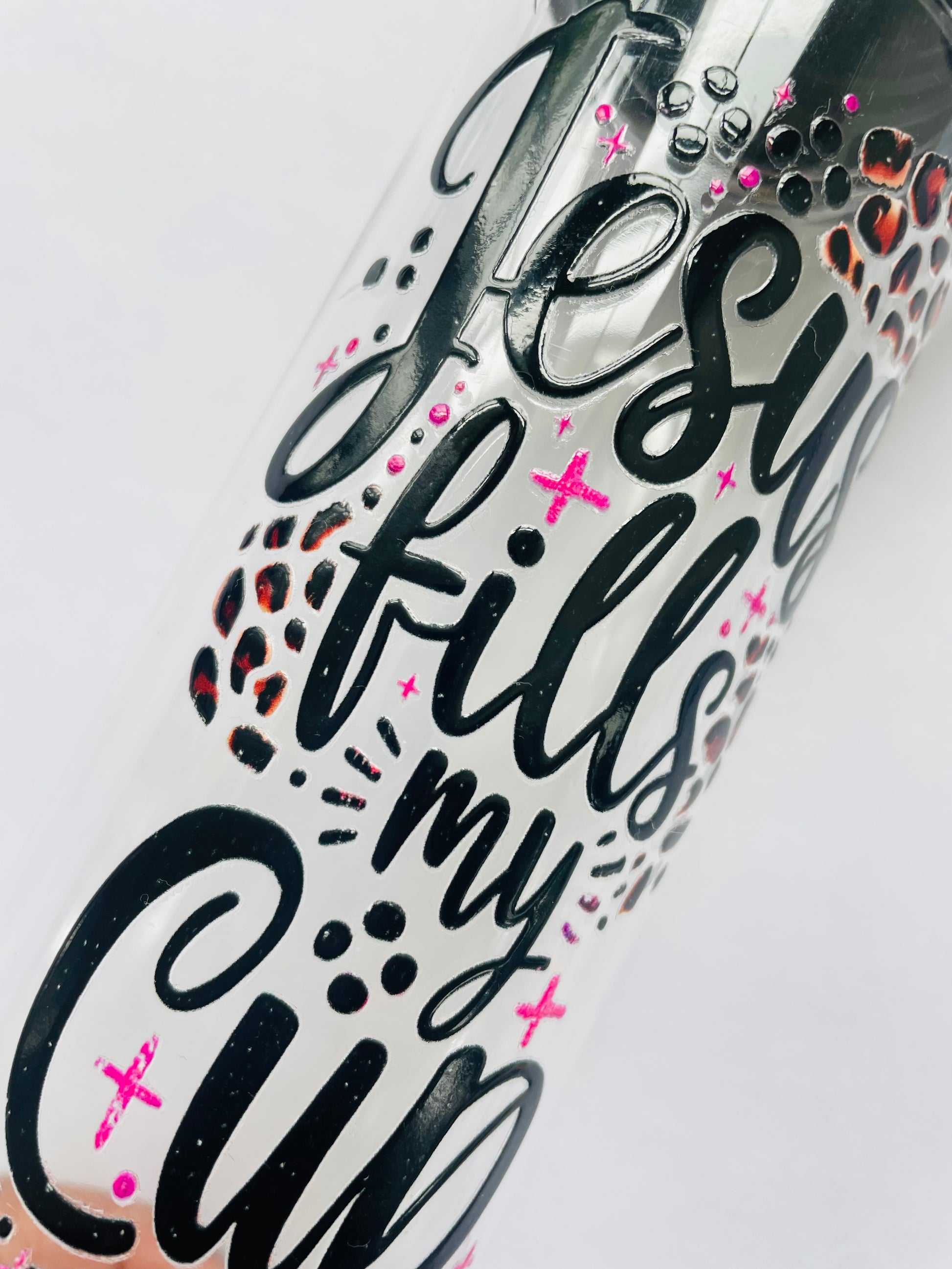 "Jesus Fills My Cup" Cheetah Print 3d, Embossed Effect Design.