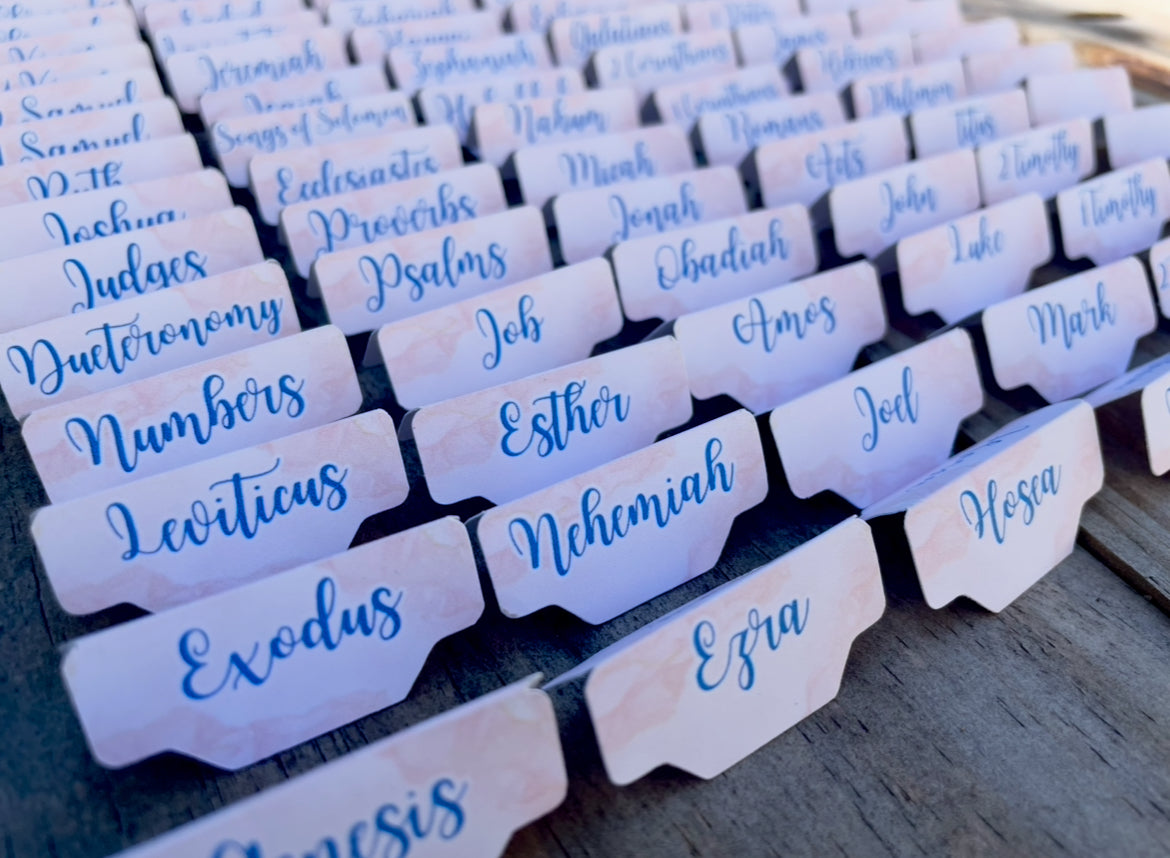 Includes 66 Bible tabs and 6 extra blank tabs for a total of 72 tabs!